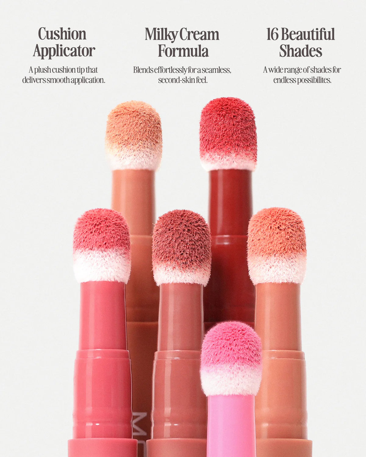 Le rouge à lèvres Cushion Kiss Lip Cream offre un fini mat et doux, pour un confort absolu. Sa formule 2-en-1 polyvalente glisse sur les lèvres et fusionne avec elles pour un effet flouté et velouté qui dure jusqu'à 12 heures, sans bavure ni transfert. Sa texture crémeuse et légère se module facilement, vous offrant une couleur sur mesure, imperceptiblement imperceptible. L'applicateur coussin est doté d'une tête de pinceau douce et élargie, conçue pour une application précise et luxueuse à chaque utilisation. Avec 16 teintes sublimes au choix, le rouge à lèvres Cushion Kiss Lip Cream deviendra votre allié beauté indispensable, de jour comme de nuit !